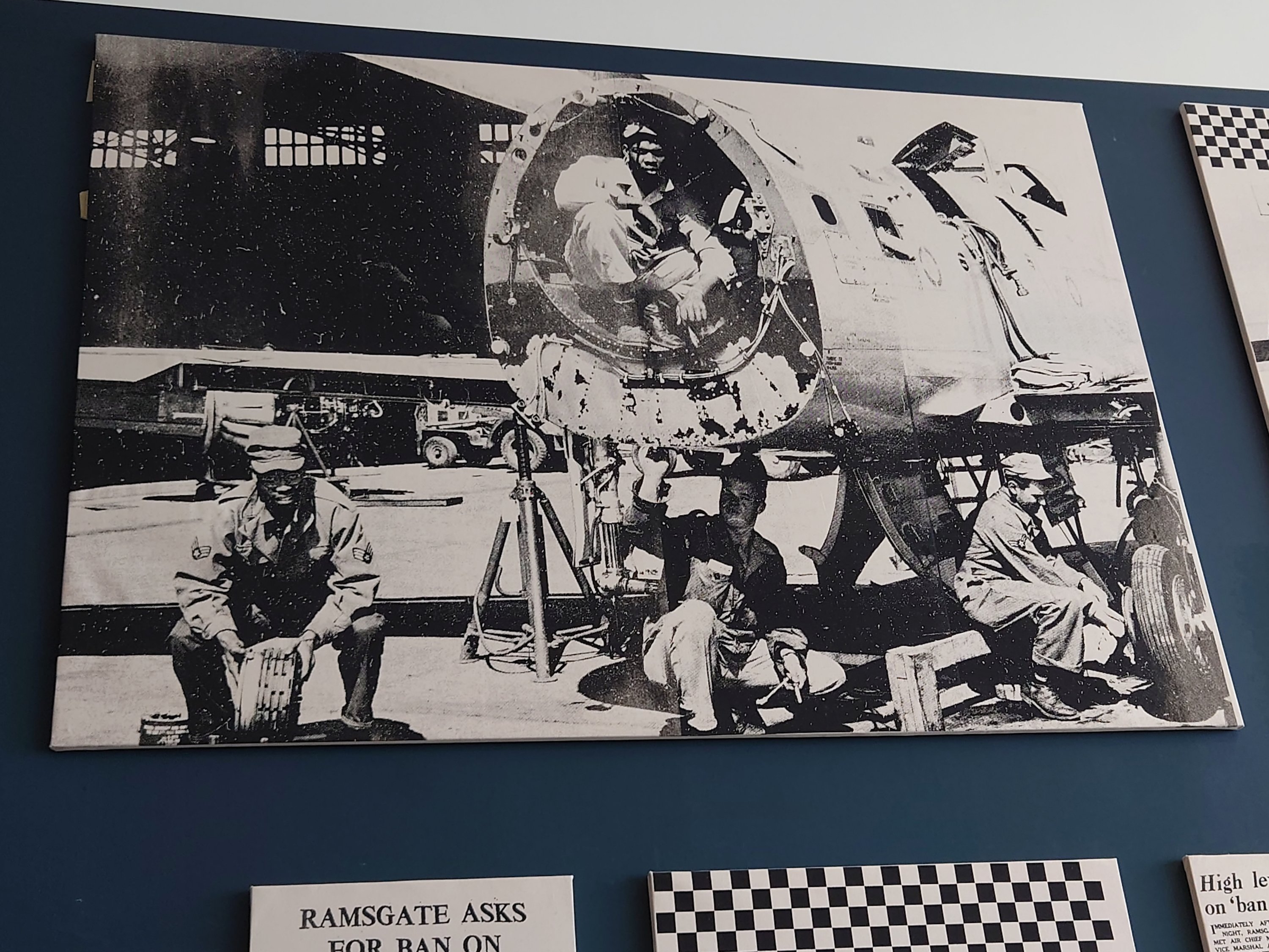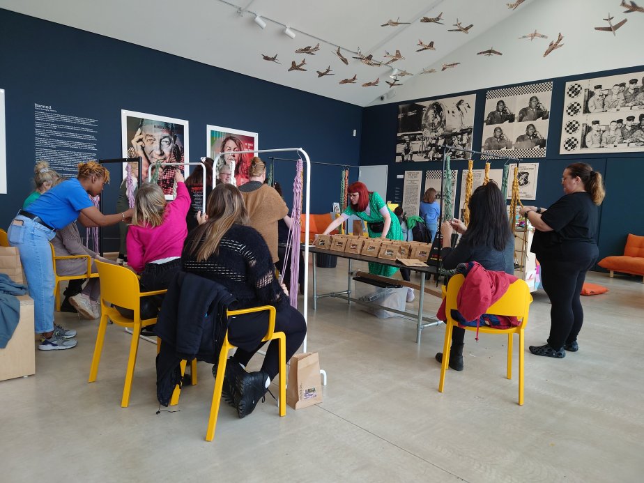 The room that exhibited Banned should have been very solemn about the racial injustices in the 1940s UK. But that room had turned into a noisy playroom. They made macrame, and toddlers were running around, crying and screaming. The usual respectful hush of a gallery was lost. Viewers of the Banned artworks felt squashed and poorly positioned. It was challenging to think and sit back and contemplate the seriousness of the exhibits. Instead, it could be described as a strange juxtaposition open to interpretation because it became a playground for adults and children as if they were dancing on the black American servicemen’s graves. Doing the macrame and other activities meant many of those in the learning gallery had turned their back on exhibits of the past racial atrocities in the UK last Sunday. They seemed to be ignored as if it didn’t matter. My teacher hat on also wondered whether the macrame teacher could be asked to get participants to create some form that tied or connected in with the exhibit and use wool colours that matched the sombre displays, like greys instead of the bright kindergarten hues. The gallery’s placing of the two very different activities just needed more thought.