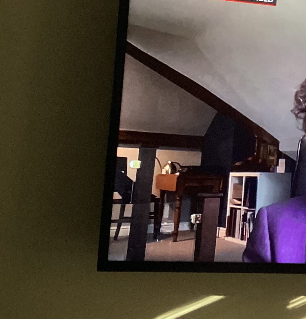 I noticed how it seemed like he had carefully arranged how his office set up would appear on screen.