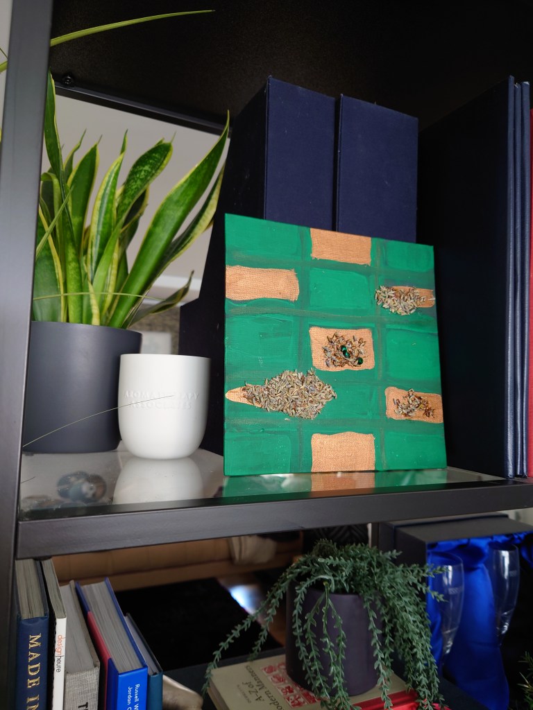 But I wanted to do something different. I integrated paintings with moss art. It is a bit of a continuance of the work I do with herbs dried flowers and things like lavender in art.
