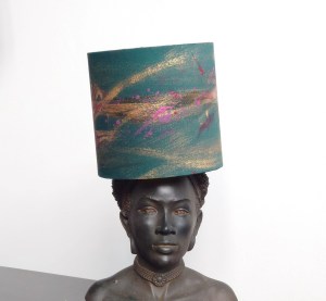 Then I didn’t think about it again until I had to take some images for my 15 cm lampshades for the desks of stylish professionals and their statement yet cosey task lighting. I was searching for inspiration and realised that sitting across from me was a head figure I bought from a trendy interior designer, Abigail Ahern’s shop. I promptly placed one of the lampshades on the statue, which did seem like sacrilege a bit at first.