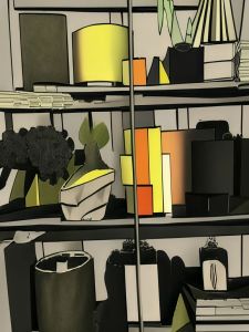 Consider curating talking pieces on your shelves to help you connect with colleagues. Avoid those bland vanilla Items you got because the influencer told you they look great. It might be a good idea to plan your shelf styling. You could take a picture on your phone and get the AI to rehash it to produce a simple outline like the one I did below. This might give you a sense of where the lines of the styling need altering so that they form that V shape or pyramid going across.